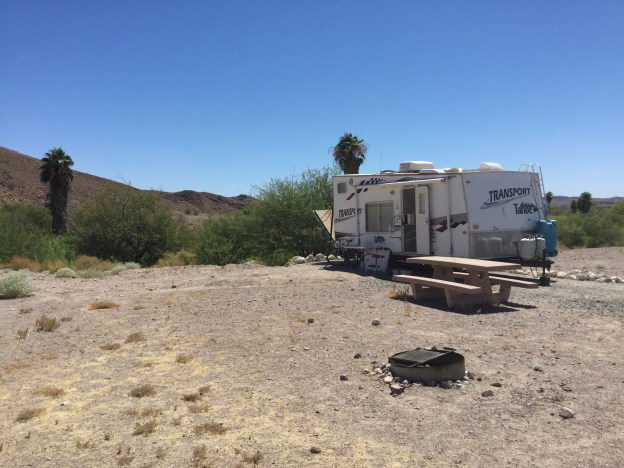 About 20 miles north of Yuma Arizona and 5 miles from my previous camp site. A little bit cooler near the lake which is fed by the Colorado River. There is a nice shaded path along the water that is perfect for praying on hot days. Praise YAH!