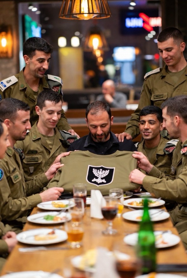 Northwest Territories, Imperial Dam BLM LTVA, California > I was browsing through my emails and came upon an email from The Soul of Israel which was advertising clothing with the IDF (Israel Defense Forces) Insignia. I looked at the t-shirts and sweat shirts with the IDF Insignias and thought to myself that I could not wear these clothes because I have not earned the right to wear an IDF Insignia. I immediately saw in a vision myself with a group of IDF solders in a restaurant all gathered at one end of a table. They were presenting me a sweatshirt with the IDF Insignia on it and declaring me as an honorary member of the IDF. Then I saw IDF soldiers who were eating in the restaurant stand and clap their hands. Tears started to flood out of my eyes (real) and I was touched very deeply at the honor of wearing an IDF Insignia.